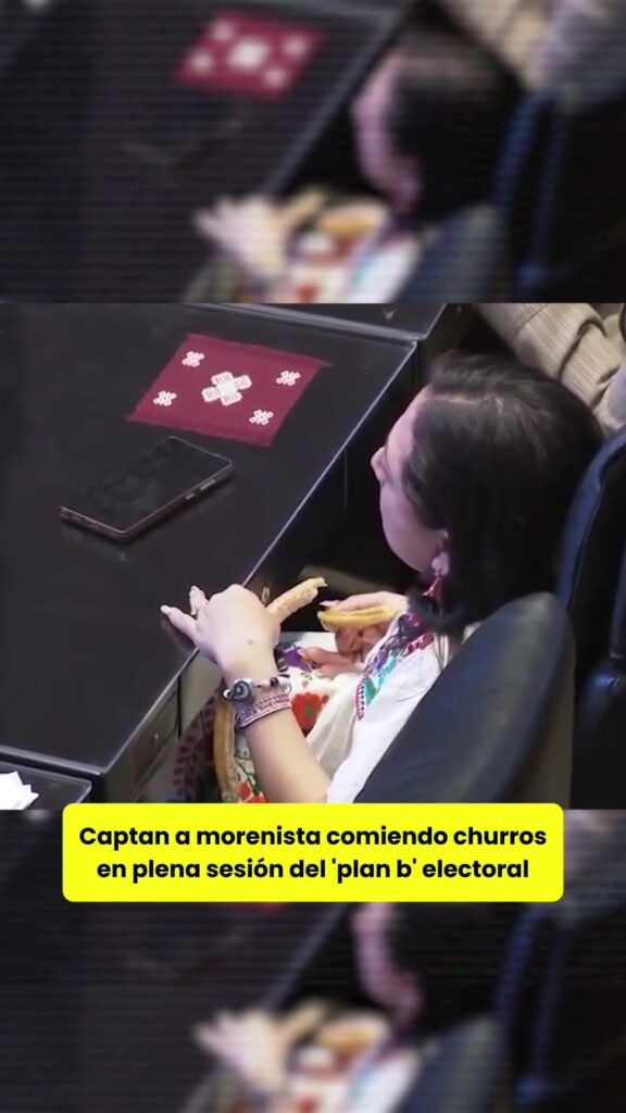 Captan a morenista comiendo churros en plena sesión del ‘plan b’ electoral. #sheinbaum #ine #politica #morena