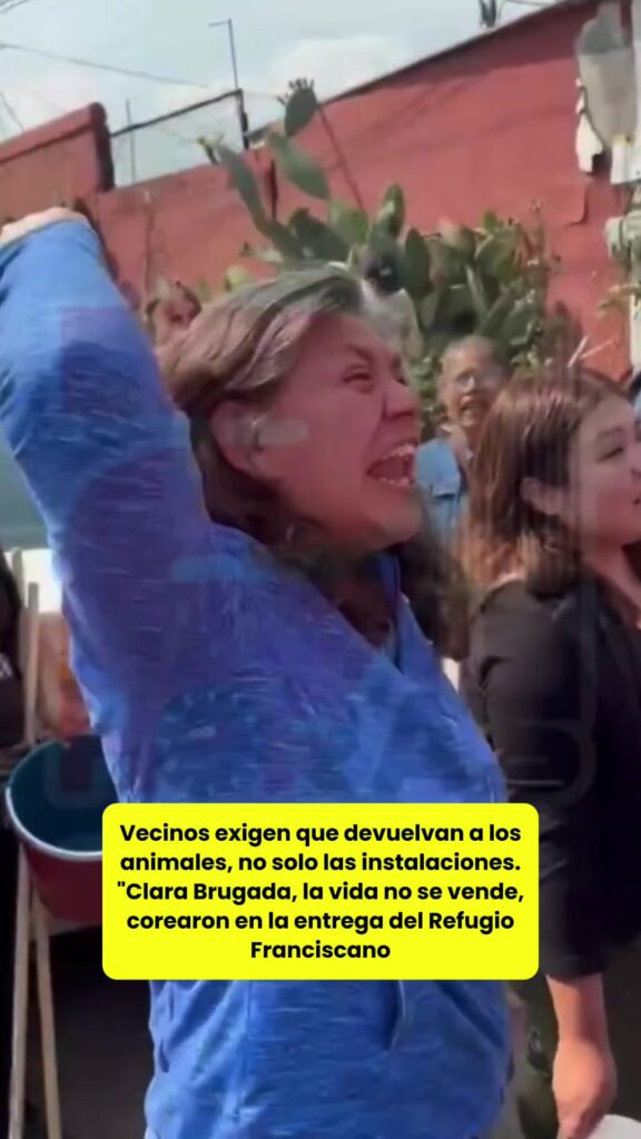 Vecinos exigen que devuelvan a los animales, no solo las instalaciones. “Clara Brugada, la vida no se vende”, corearon en la entrega del Refugio Franciscano. #animales #rescate #refugio #clarabrugada
