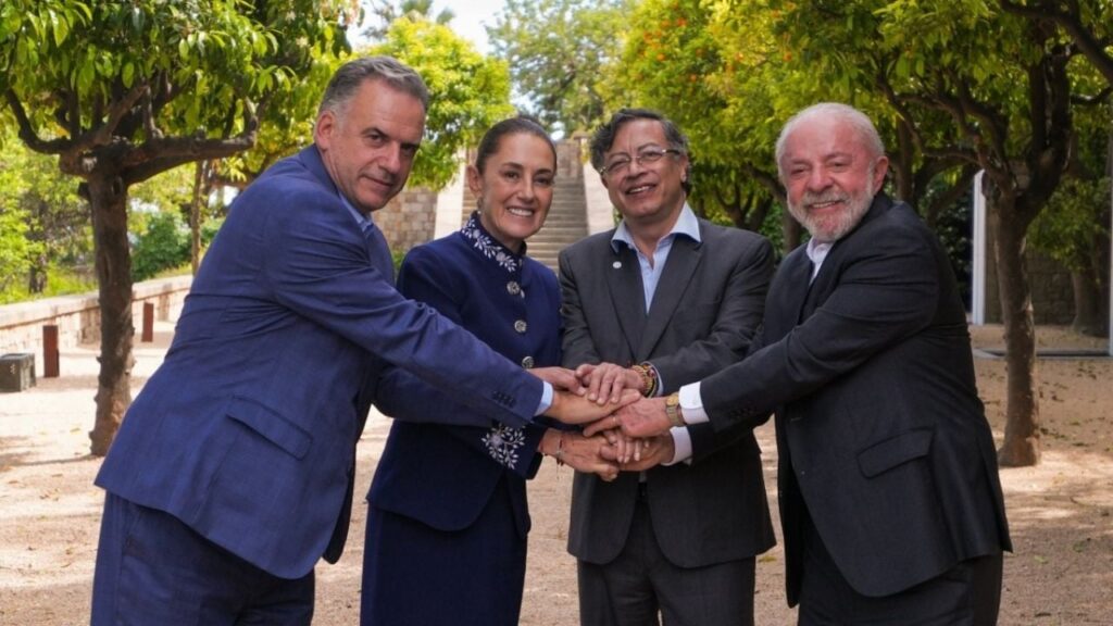 En un mensaje difundido en sus cuentas oficiales, VOX compartió una imagen de los presidentes Claudia Sheinbaum (México), Gustavo Petro (Colombia) y Luiz Inácio Lula da Silva (Brasil), acompañada de la frase crítica. La organización expresó que estos líderes se asocian con figuras como Pedro Sánchez y Nicolás Maduro, aludiendo a Lula como "el carcelero" y a Sheinbaum como "la socia y protectora de los cárteles de la droga."